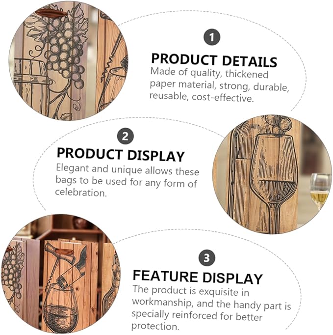 - Wine favors bag-- made of quality, thickened paper material, strong, durable, reusable, cost-effective.