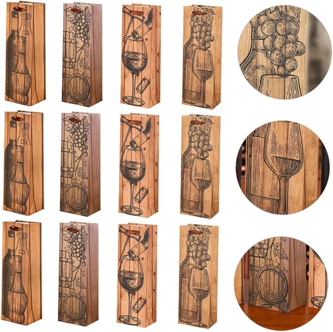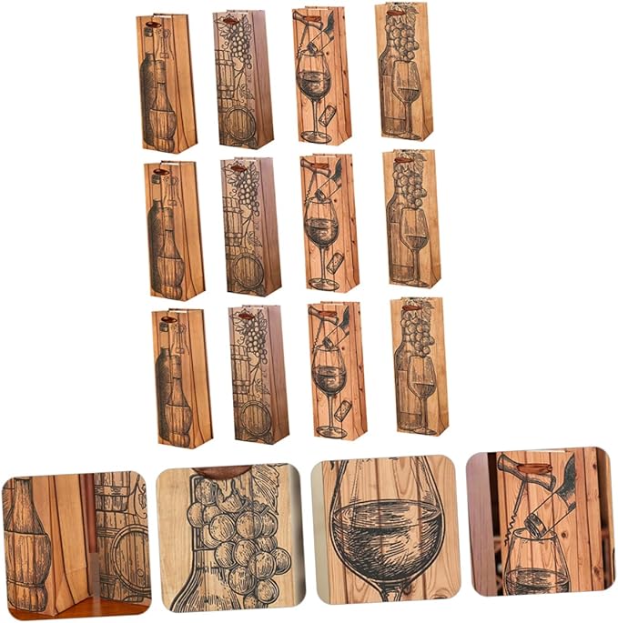 - Portable bag-- 💝【unique design 】beautiful retro unique design of wine and grape. including 12pcs wine bags with 4 different chic patterns, they can give your wine a new look.