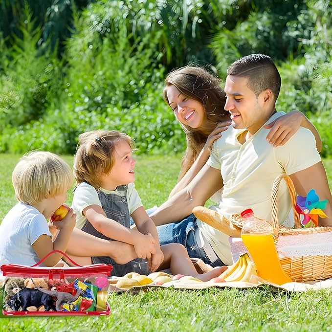 - Considerate Design: This clear pvc toy storage bags allows you to identify the items inside and quickly find what you want; It has a handle, easy to carry toys or books; Double zipper design, can be fully unzipped for convenient packaging.