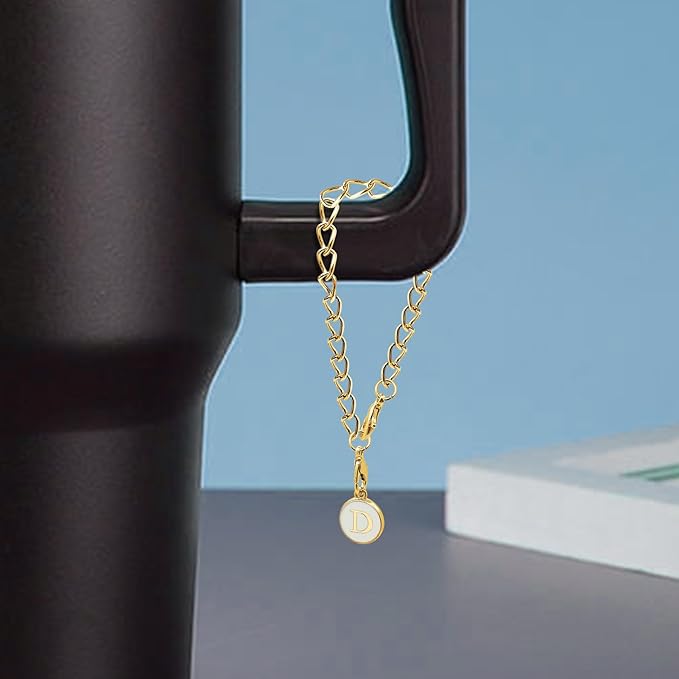 - [ High Quality Material ] The chain and the initial letter pendant are made of alloy with a refined lobster clasp which can be easily hanged or removed from your cup handle. You can adjust the size to fit different cups by clasping on chain loop.