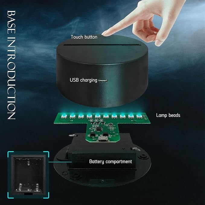 - 1.(2 in 1):Come with a Normal Size and a Mini USB Lamp, Normal Size Lamp with 3D visual effect,7 Color Change by Touch Control, Mini one is White Color Only ,Can decor your Laptop ,Bedside