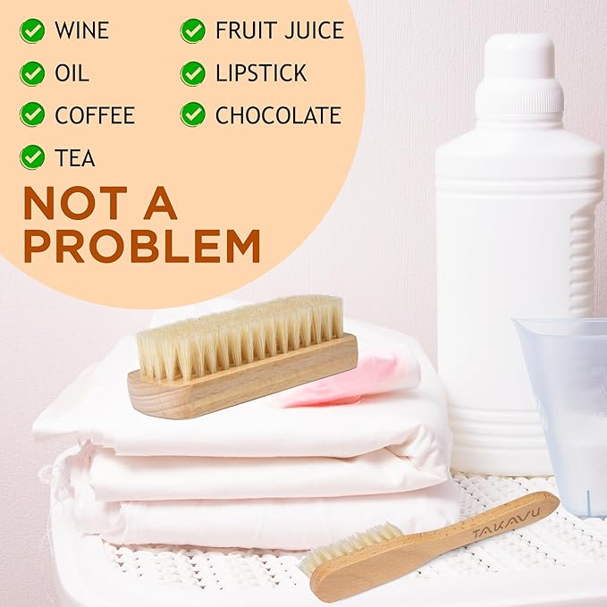 - Use & Care: Wetting the brush and stained area then apply the stain removers. Wait for a few minutes for the detergent to soak on the fabric, then use a TAKAVU laundry brush to gently scrub on the surface, and wash the stained area by hand again to remove the dirt. After use, simply raise the brush with warm water and some mild detergent, and let them dry to facilitate the next use.