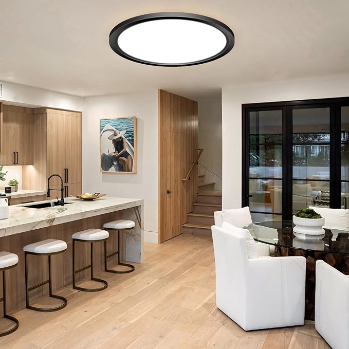 - 【Energy Saving & 3 Color Modes】Equivalent to a traditional 150W two-bulb, Slochi LED ceiling light only has 24W(3200 lumens) low power consumption, which can save up to 90% on your home electricity bills by replacing your old lighting fixtures . In addition, our flush mount ceiling light adopts advanced color temperature adjustable chip with 3 color temperatures (Warm White 3000K, Natural White 4000K, Daylight White 6500K).