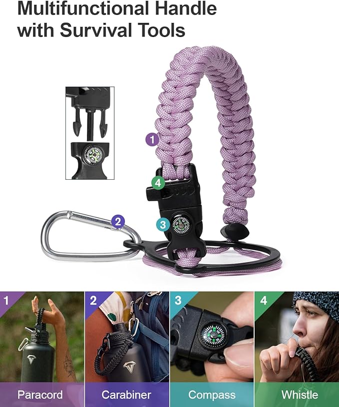 - Ready for adventures: The paracord handle is crafted from sturdy braided rope with an attached survival kit. This includes a compass, a whistle, and a clip, making it an ideal companion for any outdoor activity — be it camping,hiking or exploring new places through travelling.