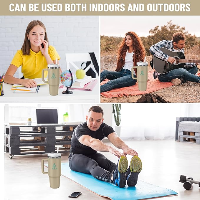 40oz stainless Steel Insulated Tumbler with Handle, lid and straw for cold water, Iced tea, or coffee - 100% Leak-Proof - Cupholder Friendly Travel Mug- Gifts for Women Men Him Her (Brown)