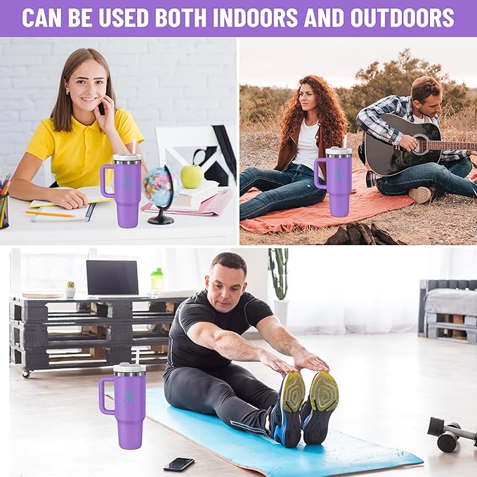 40oz stainless Steel Insulated Tumbler with Handle, lid and straw for cold water, Iced tea, or coffee - 100% Leak-Proof - Cupholder Friendly Travel Mug- Gifts for Women Men Him Her (Purple)