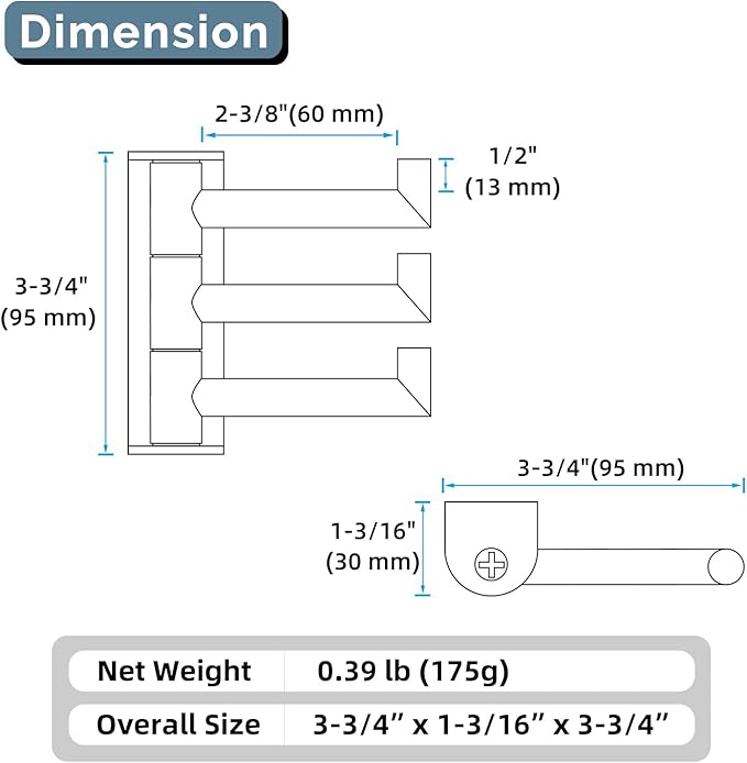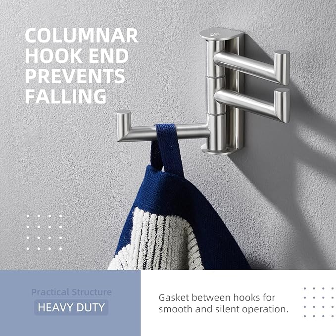 - ADD EXTRA STORAGE: swivel towel hook is a life-efficient accent, with 3 arms allowing for at least 3 items to be hung at once, which not only eliminates clutter but also saves space