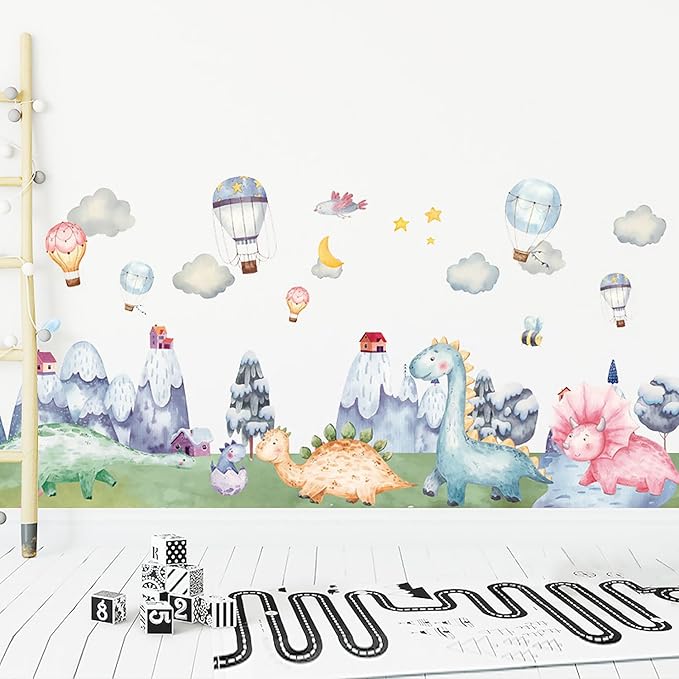 - đŠăStylish PatternăDinosaur wall decals, Dinosaur stickers print art and modern design into an eye-catching mural. This sticker is very suitable for nursery,bedroom,playroom,living room,children's rooms.