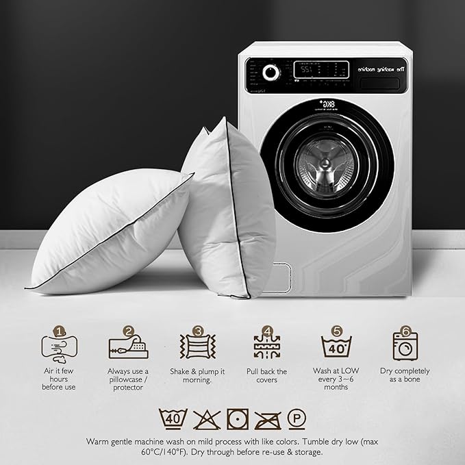 - ๐๐ก๐๐ญ ๐๐จ๐ฎ ๐๐๐ง ๐๐๐ญ๏ผOur feather pillows king are available in standard size 20"x26", queen size 20"x30", and king size 20"x36"; Piped for style and durability, and can be machine washed and dried while maintaining their shape and fluffiness after multiple washes