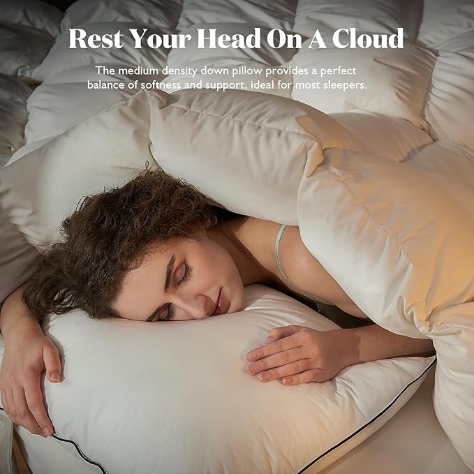 - ๐๐จ๐จ๐๐๐ฒ๐ ๐๐ง๐ฌ๐จ๐ฆ๐ง๐ข๐๏ผThis goose down pillows king features a medium density filling that is soft yet supportive when your head sinks in, providing better neck support and maximum comfort for your head and shoulders