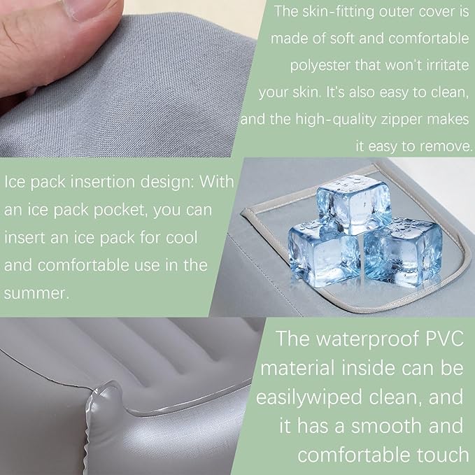 - 【Easy Cleaning and Effortless Operation】The removable cover facilitates hassle-free cleaning, promoting a hygienic and sustainable lifestyle. Its reusable nature makes it the perfect choice for the environmentally conscious individual.Using the pillow is a breeze. Simply inflate it using either an air pump or by blowing into the valve, ensuring convenience and ease of use.then deflates to a compact size, saving precious space when traveling.