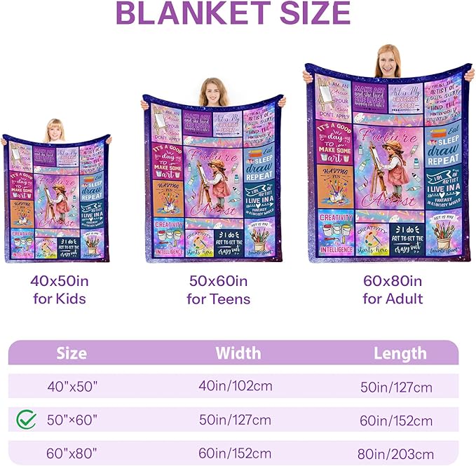 Artist Gifts Blanket, Gifts for Artists, Art Gifts for Women, Art Teacher Gifts, Birthday Gift for Art Lovers, Gifts for Artists Women, Artist Gifts, Painting Blanket 50x60 in