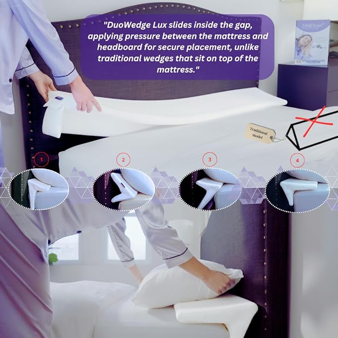 Bed Wedge Pillow for headboard Mattress Gap DuoWedge lux. (White, Double 54") The Perfect Filler for Gaps up to 7"