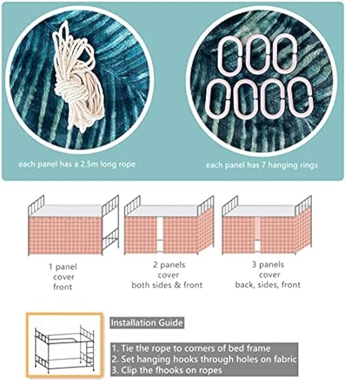 - 【Exquisite Material】: Made of high-quality polyester fabric and alloy eyelets, it is breathable, non fading, easy to clean, and durable, suitable for use in double decker beds or baby cribs in student dormitories.