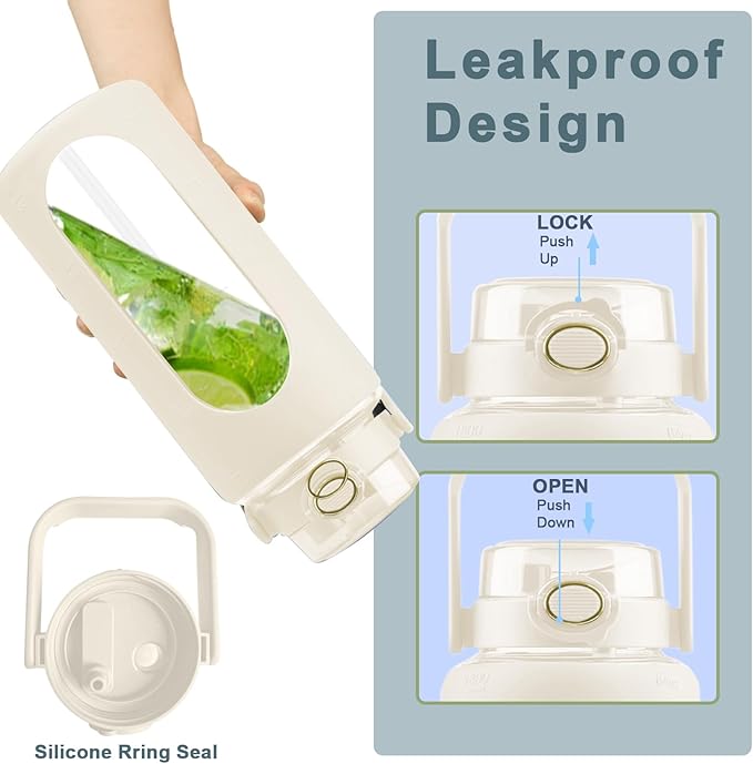 - 【A Motivational Water Bottle 】 Our half gallon glass water bottle with straw can hold 64oz of water, which is equivalent to the 8 cups of water recommended by scientists for humans to drink every day, helping you maintain moisture and drink enough water throughout the day.