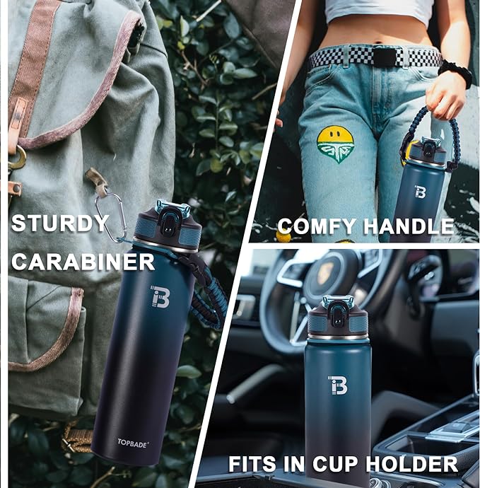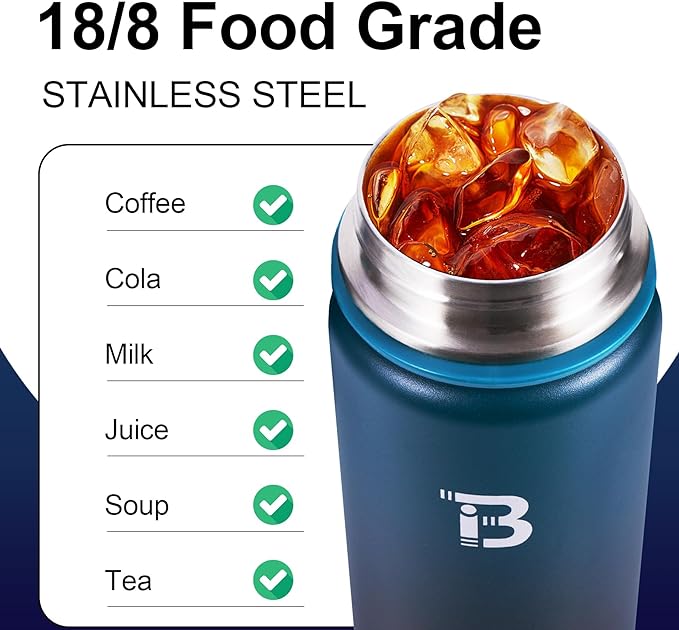 - DOUBLE WALL INSULATION: Our water bottle is made from high-quality 18/8 food-grade stainless steel, rust-proof, BPA-free, lead-free, and easy to wash. This wide mouth water bottle features double-walled vacuum insulation, which can keep your beverages cold for 24 hours and hot for 12 hours with a fresh taste. The wide mouth design is perfect for ice cubes and easy to clean.