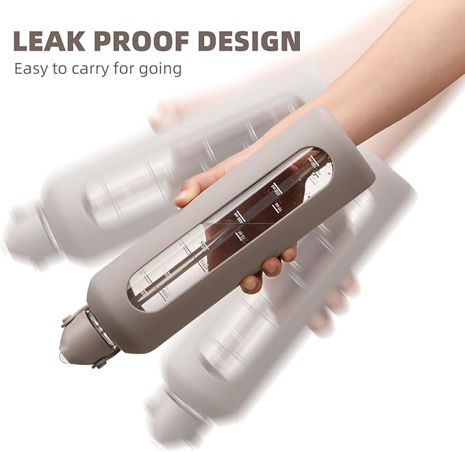- 【HUMANIZED DESIGN DETAILS】The 20 oz glass water bottle featured with straw lid with premium handle lid, 100% leak-proof.The motivational 1 Liter glass bottles have two ways to drink water by a high quality straw and drink directly after remove the lid, which is very convenient and fast,and it also conveniently fits in cup holders.