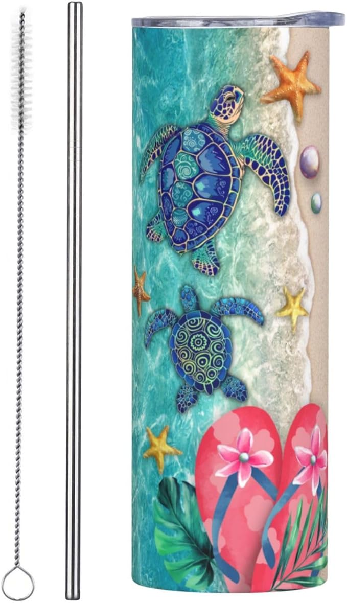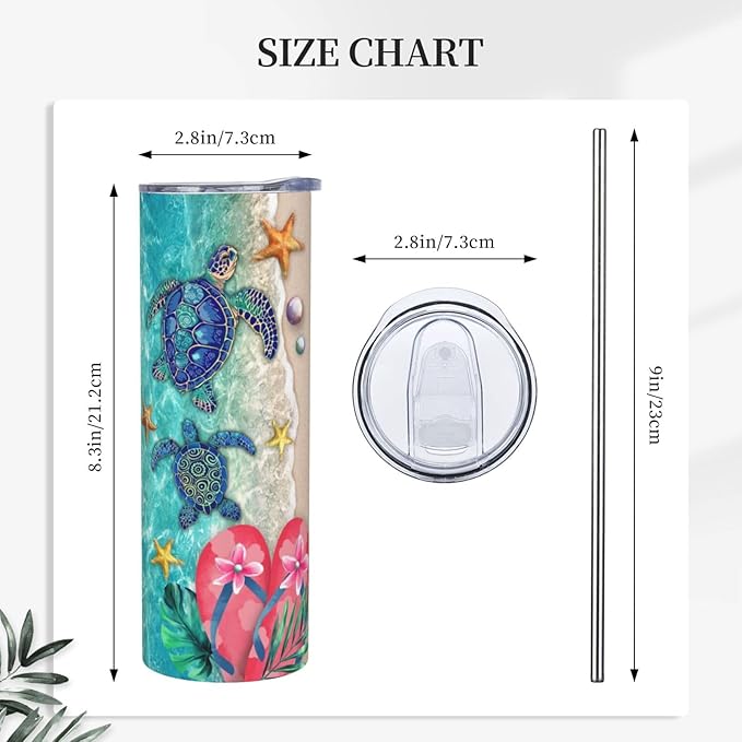 - Personalized Skinny Tumblers With Lids And Straws 20 Oz Beach Tumbler, Double Wall Insulated Keeping Your Drinks Cold For Upto 24 Hours. This Personalized Tumblers With Lids And Straws Will Be Your Go To Travel Essentials And Beach Accessories. Lovely Beach Design Personalized Tumbler.