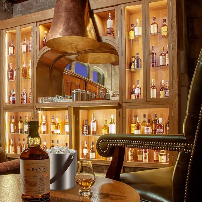 - SPECIAL DESIGN: In addition, our bar ice bucket has a dark brown leather handle. All of them make a comfortable,portable and stylish but practical and functional ice bucket. The lid with a black sillicone ring to make a further airtight for ice cubes