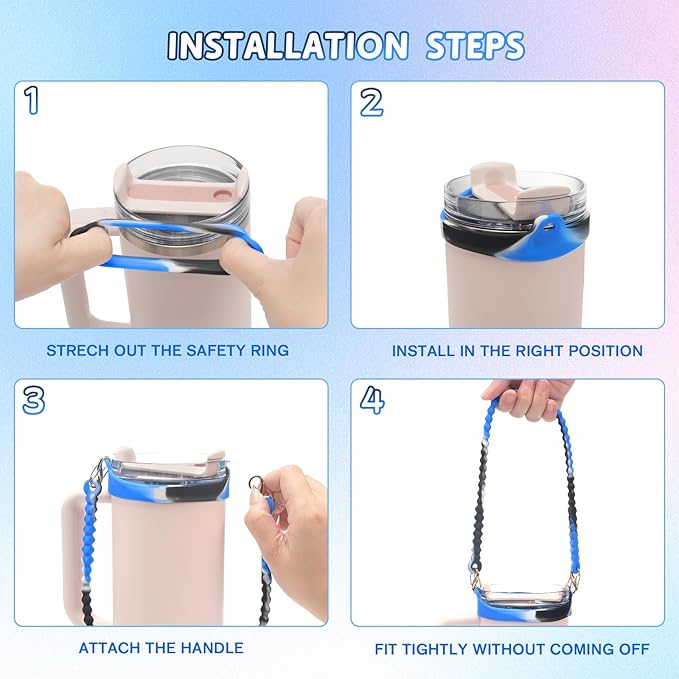 - Perfect Fit:Our soft and flexible water carrier strap accommodates most 8-40oz water bottle, and compatibility with Stanley cups, cirkul water bottle. Ensuring a secure fit and no more worries about accidental drops