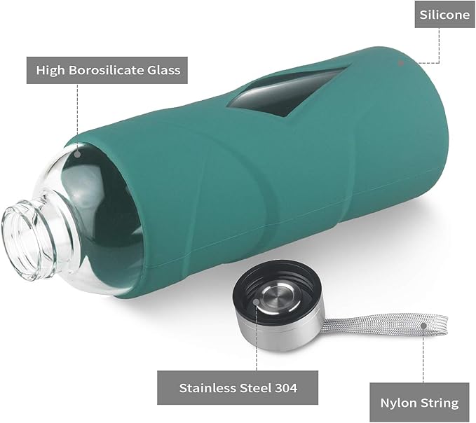 - đź’— STYLISH & PORTABLE: Take it everywhere! Our sleek design makes the glass water bottle has an ideal travel body and elegant appearance. Soft neoprene sleeve with handle offers secure grip and helps protect against breakage.