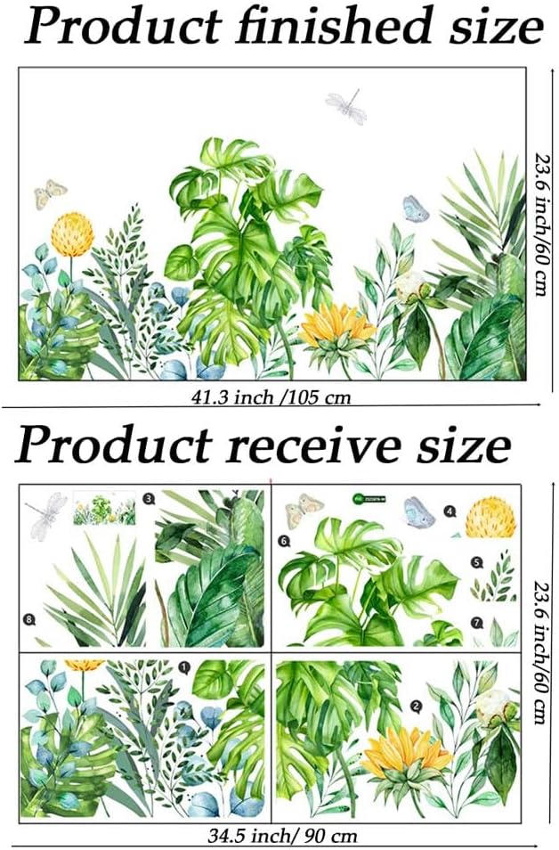 - DIY Gift Choice: This bedroom plant wall sticker has a vibrant and attractive pattern, featuring with green tropical plants, flower and butterfly. This bright colors decor your home and add more fun for kids, an excellent gift for birthday, Valentine's Day or Christmas gift for a child, friend, roommate or family member.