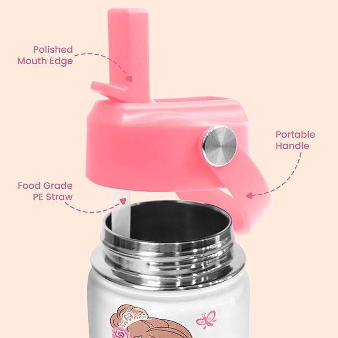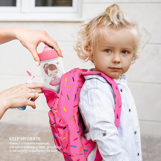 Ballet Water Bottle - Kids Water Bottle with Straw Lid - 12 Oz Insulated Stainless Steel Water Bottles for Toddlers Kid Girls - Travel Cup for School Sports