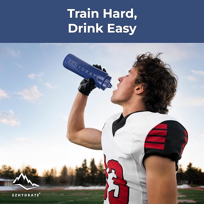 - DURABLE AND SAFE: The 32-ounce BPA-free sports water bottle is crafted from durable polyethylene that's easy to squeeze. This Ezhydrate water bottle equipment ensures safe hydration without harmful chemicals. Perfect for athletes, it fits most bike cages and is designed for rigorous use, making it a reliable Ezhydrate squeeze water bottle for any activity.