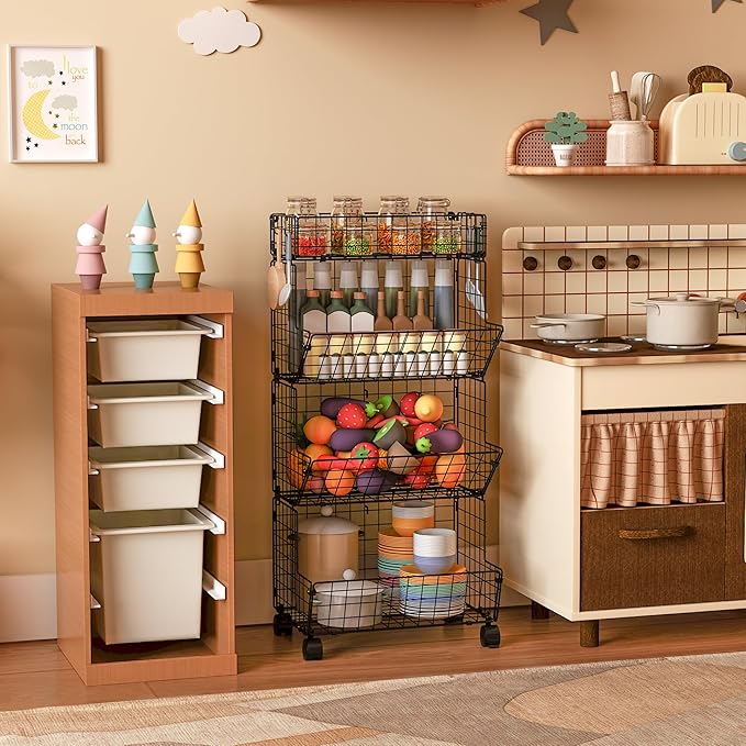 - PERFECT FOR PLAYROOM STORAGE:Our 4 tier rolling cartis the ideal solution for organizing your child's room. It efficiently stores toys, puzzles, books, drawing tools, and stationery, and can even be used for bath toys. Place it in the bedroom, living room, study, or playroom to keep your child's items organized and easily accessible, solving the common issue of cluttered spaces and making clean-up a breeze.