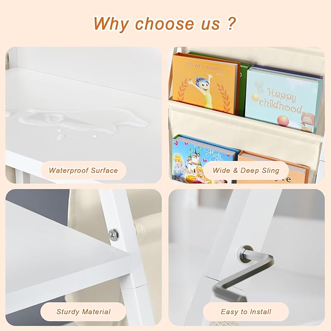 - [Easy Assembly and Installation]-- The toddler book rack has a clear installation manual, and each part is numbered, which greatly reduces the assembly time, and the product installation only takes 15 minutes.If there is any problem during the assembly process, please contact us immediately, we will be very fast deal with your problems, your satisfaction is our first priority.