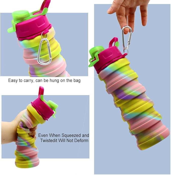 - DURABLE DESIGN: Made from flexible silicone, this bottle easily folds up for compact storage and features a secure screw-on lid to prevent leaks.