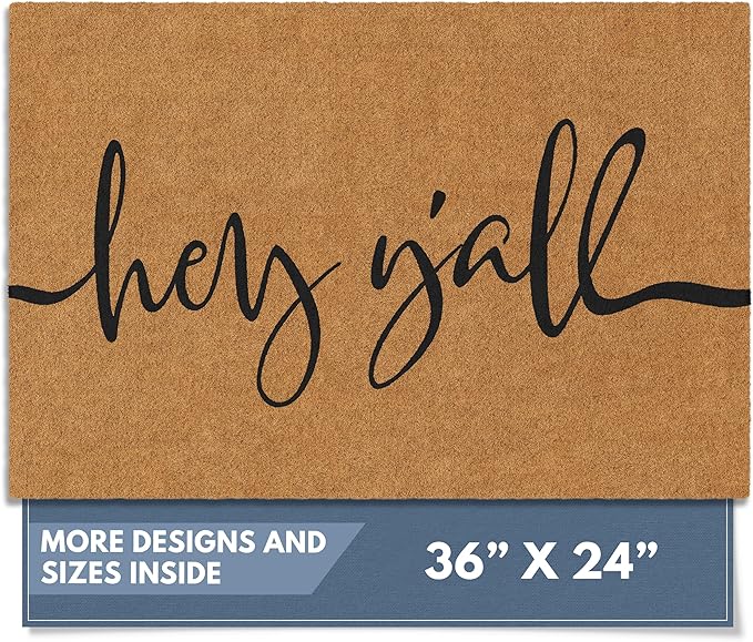 - Say Hello in Style - Welcome guests into your home with our eye-catching Hey Y’all Doormat; it’s the perfect indoor or outdoor welcome mat for front door. The doormat’s bold design and large lettering make it impossible to miss, adding a touch of southern charm and hospitality to any entryway.