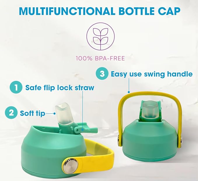 - Convenient Portability: Our kid-friendly water bottle boasts a 12oz capacity and a robust swivel handle attached to the lid, perfect for children with petite hands. But that's not all – we also include an additional bottle strap for added convenience. Whether it's slung over the shoulder, hooked onto a backpack, or carried by hand, our versatile design ensures effortless hydration for your child on any occasion – be it outings, school days, sports activities, or exciting adventures.