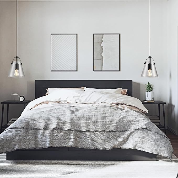 Black Pendant Lights Kitchen Island,Modern Design Clean Clear Farmhouse Glass Pendant Light,Light Fixture Kitchen Pendant Medium Hanging Light Fixture for Sink A60 Bulb Recommened
