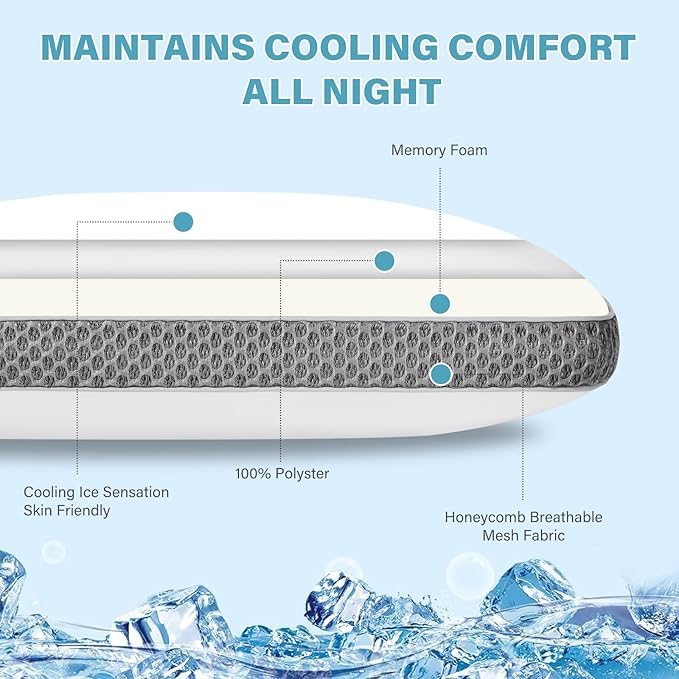 - š§ćBreathable Cooling PillowcasećThe sleeping pillow features a high-quality double-layer pillowcase that is soft and fits snugly with the pillow core, with 3 times the breathability of other contour pillow. It is removable with a zipper, machine-washable. The pillowcase is made of COLD SILK TECHNOLOGY FABRIC, perfectly fitting the skin, with soft and cooling fabric that keep you cool all night long-allowing the skin to breathe and have a dry night! Give you the comfortable sleep you want!