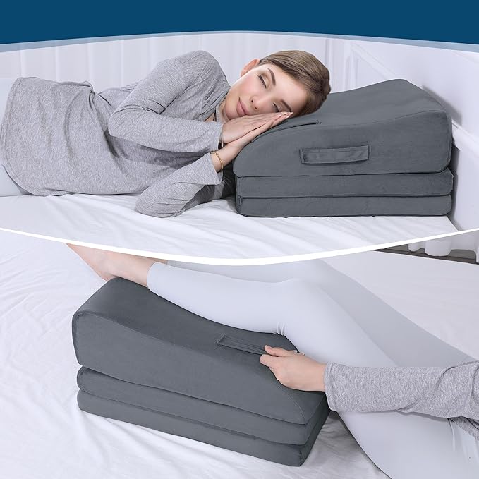 - 【ADJUSTABLE HEIGHT TO FIT YOUR NEEDS】- Specifically designed to provide your legs with superior support and comfort. You can add or remove the piece to adjust the height of the pillow to fit your size, shape or sleeping position. The wedge leg pillow provides soft support for your lower body, relieving pressure in the hips, legs and lower back.