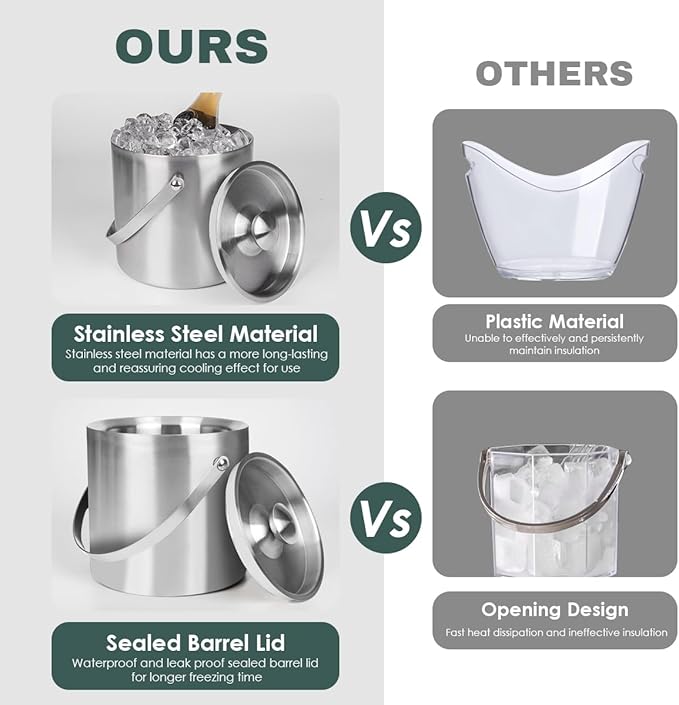 - 1. Keep your drinks cold for hours with this 3 Liter Double-Wall Insulated Ice Bucket for Cocktail Bar, perfect for parties and gatherings.