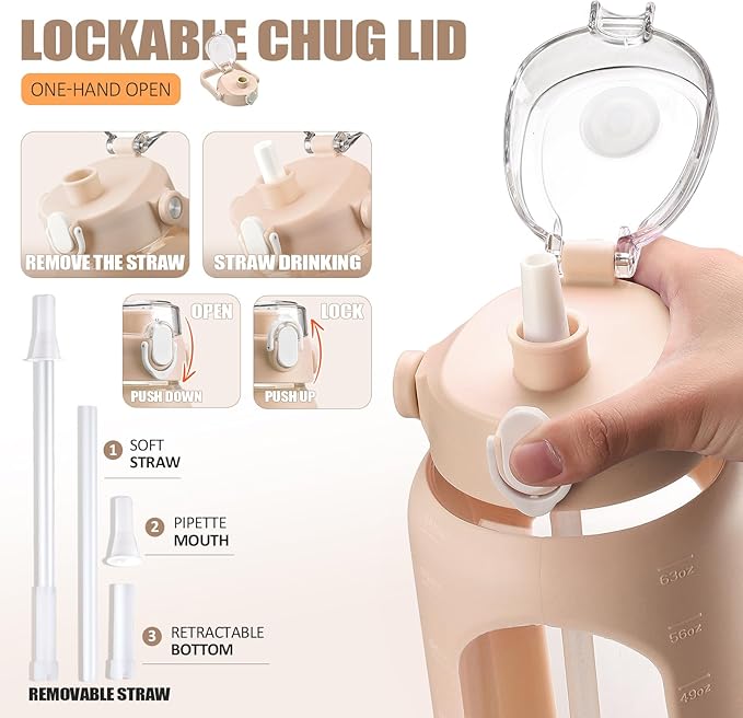 - EASY TO CLEAN: Coming with a cleaning brush makes our half gallon water bottle with straw easy to clean and wash.