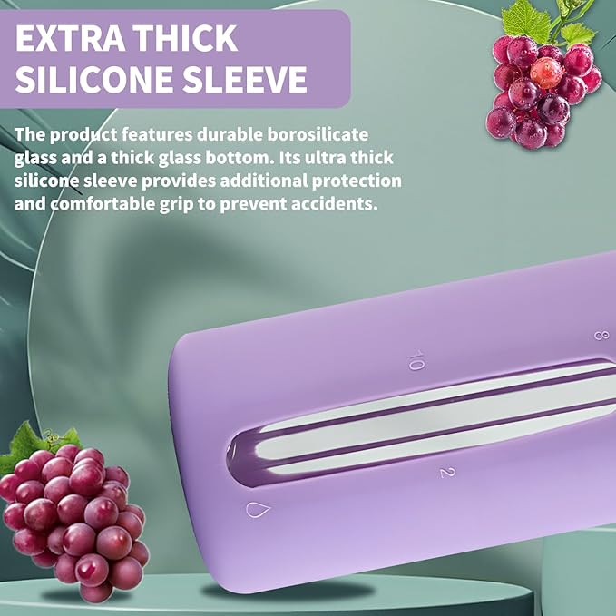 - Material:Made of high-quality glass material, the water bottle is thickened silicone sleeve package, not easy to bump, box class there are two different lids, one can be inserted into the straw, a sealed with a handle can be put in the bag to carry.