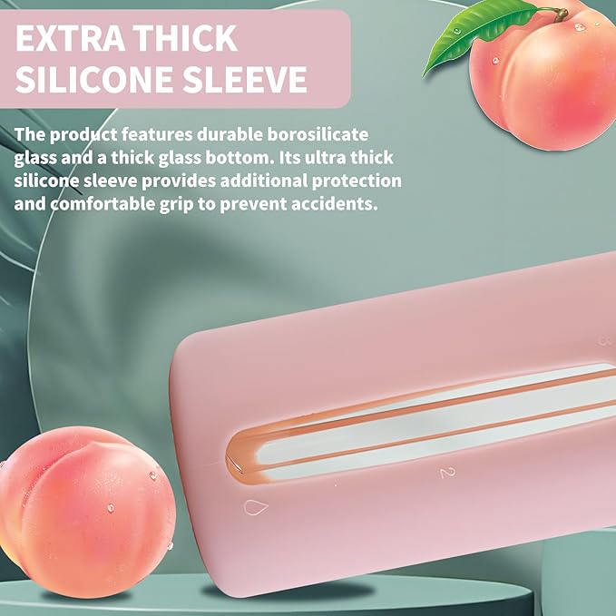 - Material:Made of high-quality glass material, the water bottle is thickened silicone sleeve package, not easy to bump, box class there are two different lids, one can be inserted into the straw, a sealed with a handle can be put in the bag to carry.