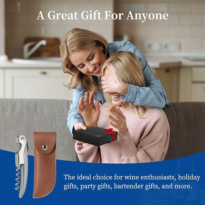 Bottle Opener, Wine gift for Wine Lover, Waiter’s Corkscrew Wine Opener with Genuine Leather Case, Foil Cutter, Beer Bottle Opener, Eco-Friendly Manual Wine Key (Stainless Steel)