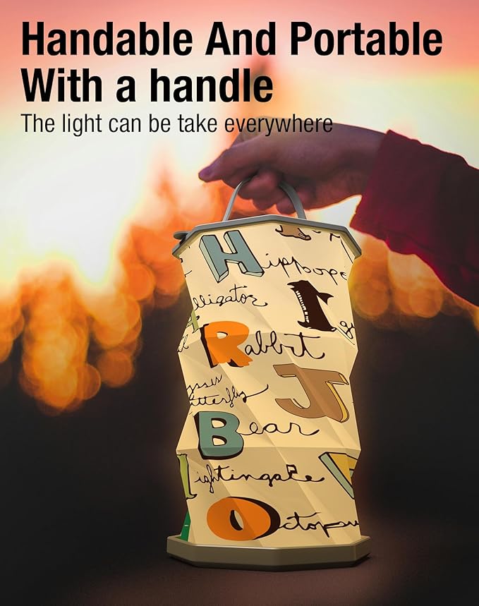 Battery Operated Lamp with Handle, Rotating Folding Lamp, Cute Letter Portable Light, Folding Paper Lantern for Home, Office, Living Room