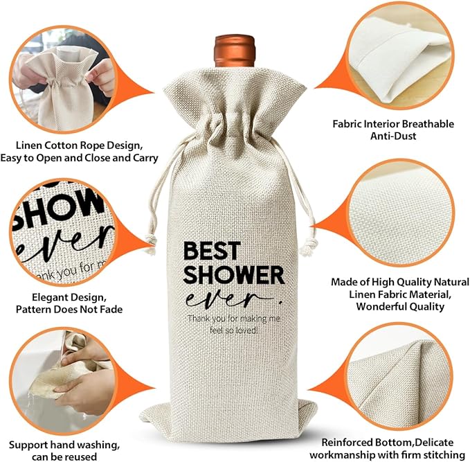 • GIFTS FOR HOSTESS: This shower wine bag is suitable for bridal, bride, new parents, soul sisters, best friends, proposal girls, women. Perfect for any special occasion, especially for weddings, bridal parties, bridal shower gifts,engagement gift,bride tribe,bridesmaid team etc