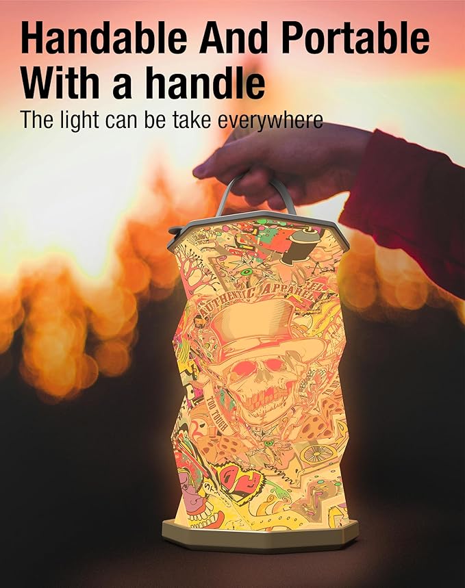 Battery Operated Lamp with Handle, Rotating Folding Lamp, Cyberpunk Portable Light, Folding Paper Lantern for Home, Office, Living Room