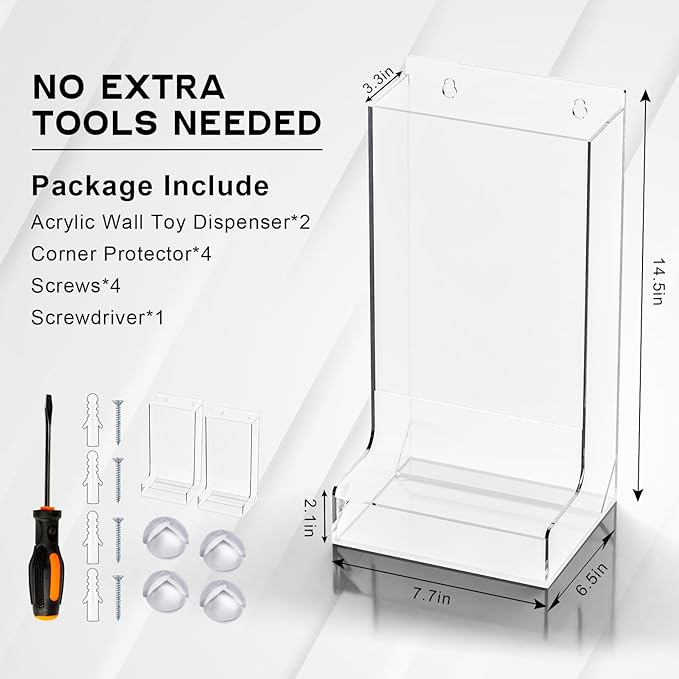 2-Pack Acrylic Wall Toy Dispenser with Corner Guards and Mounting Hardware - Enhance Toy Organization and Safety - Storing Candy