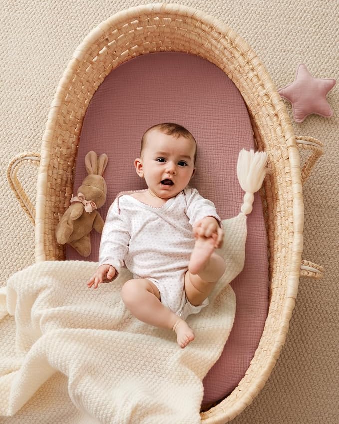 - Easy To Care: Made from premium double-layer fabric, our muslin bassinet sheets fitted are durable to use, staying soft and no shrinkage, fading, or pilling after machine washing