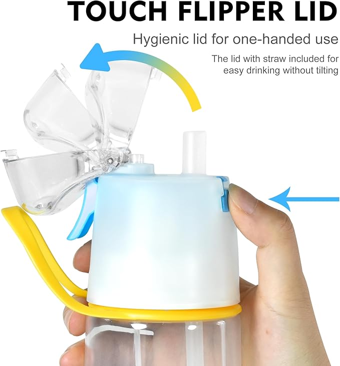 - Touch Flipper Lid - You can pop open the lid by pressing with one hand. Save yourself the hassle of unscrewing the lid. Instead, simply pop open the lid for quick and easy water refills in seconds.