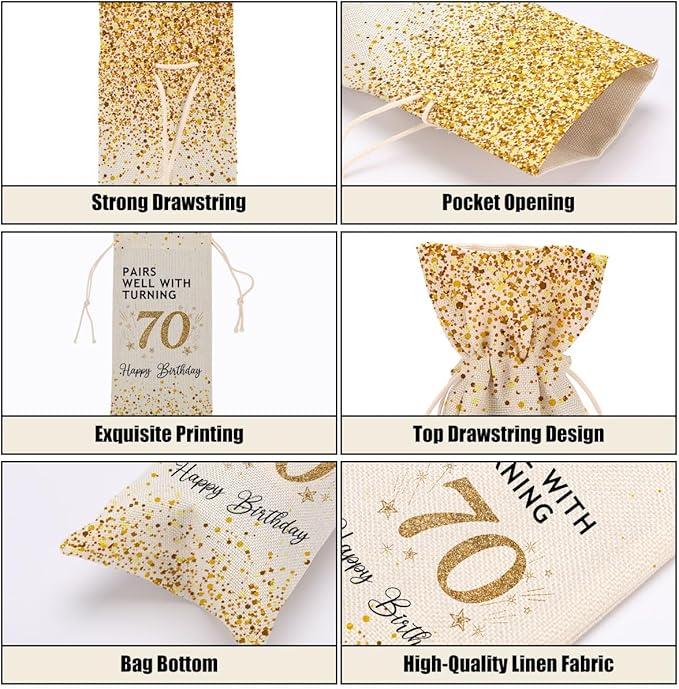 70th Birthday Gifts for Women Wine Bag 70th Birthday Decorations Meaningful 70th Birthday Gifts for Men Coworkers Lady Friend Bestie Him Anniversary Wine Bags