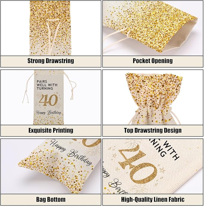 - Colorful Graphics And Text: Our wine bottle bag prints are clear and sleek with vibrant and eye-catching graphic text that adds a playful and celebratory element to any birthday party. An ideal gift for both men and women, this elegant wine bag combines beauty and functionality. Our wine bags are perfect for all kinds of important occasions, making the occasion more memorable and memorable.