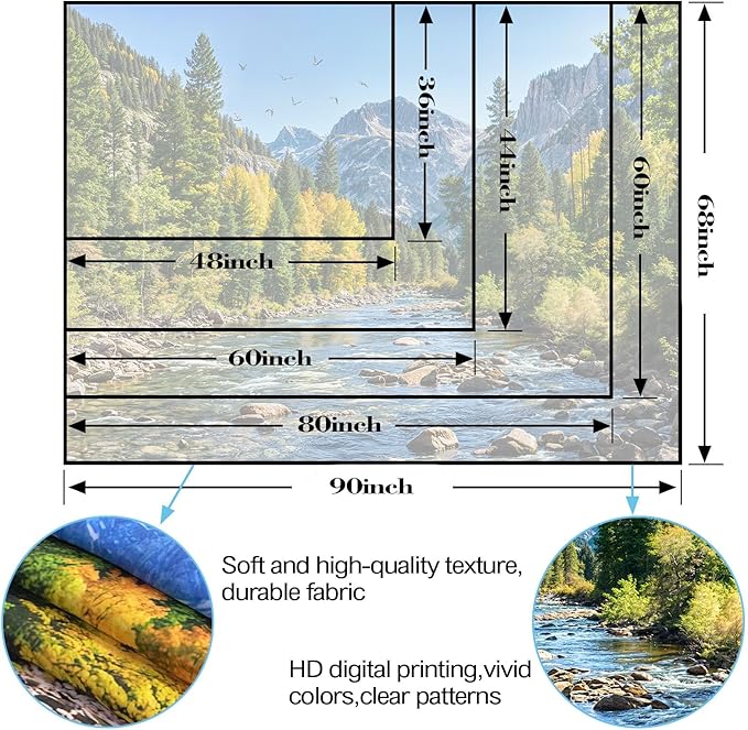 - đïžăHD Digital Printingă: Utilizing advanced HD digital printing technology, this wall tapestry features vivid colors and intricate details of a serene forest and mountain scene, complete with a flowing river and birds in flight, bringing a touch of nature's beauty into your living space.